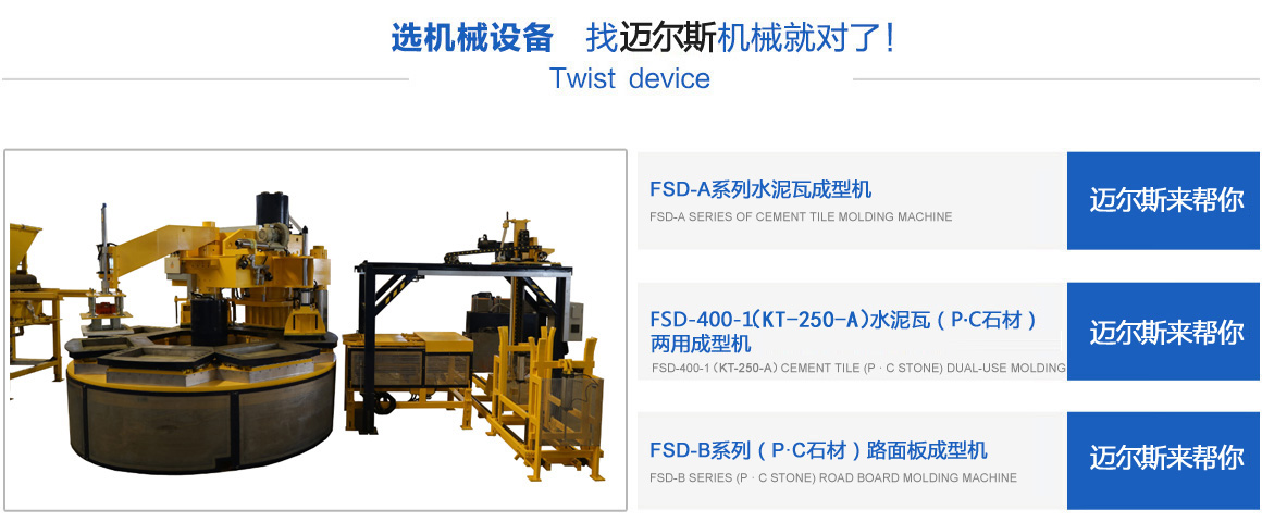 常熟市邁爾斯機械有限公司是一家集研發(fā)、生產(chǎn)、銷售于一體的建材機械高科技企業(yè),其前身為2011年注冊創(chuàng)辦的“常熟市虞山鎮(zhèn)豐順達機械配件廠”,經(jīng)過多年的努力,于2017年注冊成立“常熟市邁爾斯機械有限公司”,專業(yè)生產(chǎn)模壓水泥彩瓦機、P.C石材機、轉(zhuǎn)盤式成型機、彩色路面磚機等綠色建材設(shè)備。公司以市場為龍頭,以技術(shù)為導(dǎo)向,開發(fā)了系列化、標準化的適銷對路的機械產(chǎn)品,并且注冊了多項國家專利技術(shù),銷售范圍覆蓋全國,并且出口越南、老撾等東南亞和其它國家。